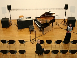 Musikalische Improvisation in der Ausstellung "Interaktve Objekte" im Kunstmuseum Heidenheim Rei Nakamura, Klavier .. Peter Vogel, Laptop ..... Opernfestspielsaison 2011 .....
