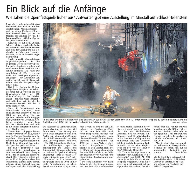 Heidenheimer Zeitung vom 25.Mai 2014 .. Opernfestspielsaison 2014 ..